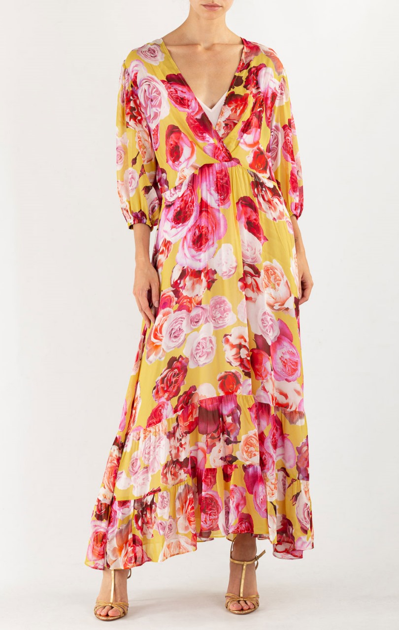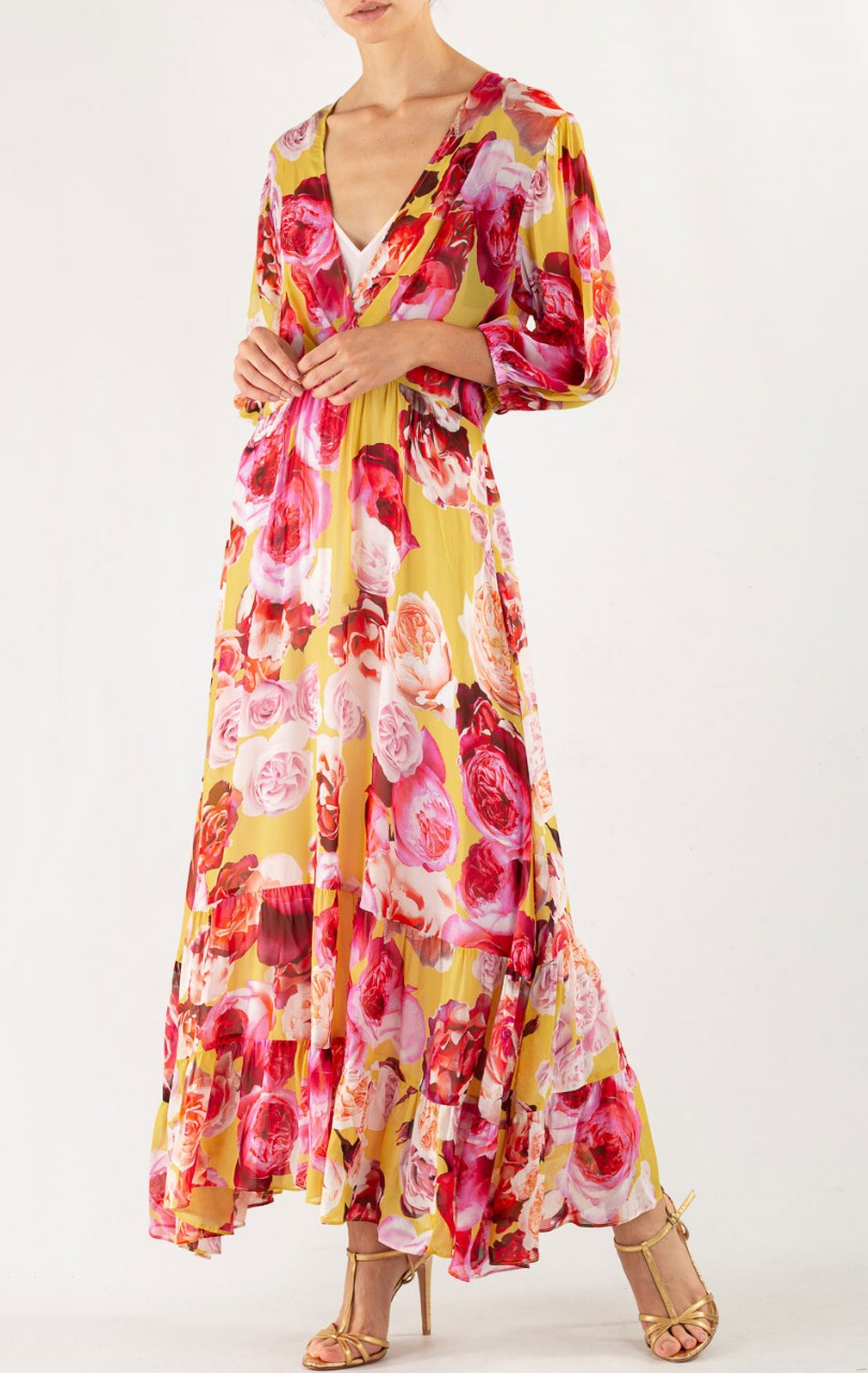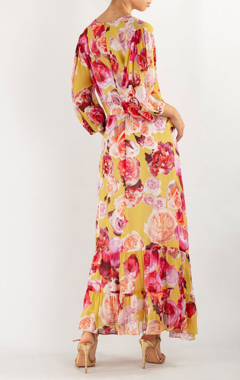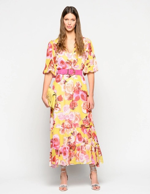 Pinko платье желтое принт Розы